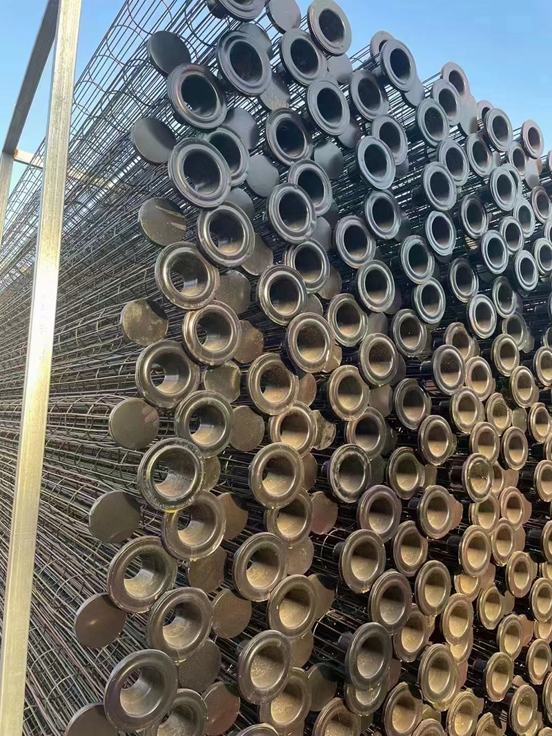除塵布袋骨架是采用直徑為3-4個(gè)的碳鋼絲或不銹鋼絲為原材料,由縱筋和支撐環(huán)縱橫疊交焊接成的籠形件。除塵布袋骨架安裝在脈沖除塵器和氣箱式脈沖除塵器中的花板孔上,用來支撐除塵濾袋防止塌陷,有助于粉塵的清除和提供除塵效率。粉塵是附著在除塵濾袋的外表面,含塵氣體經(jīng)過除塵器時(shí),粉塵被捕集在濾袋的外表面,而干凈氣體通過濾料進(jìn)入濾袋內(nèi)部后經(jīng)風(fēng)機(jī)排出。